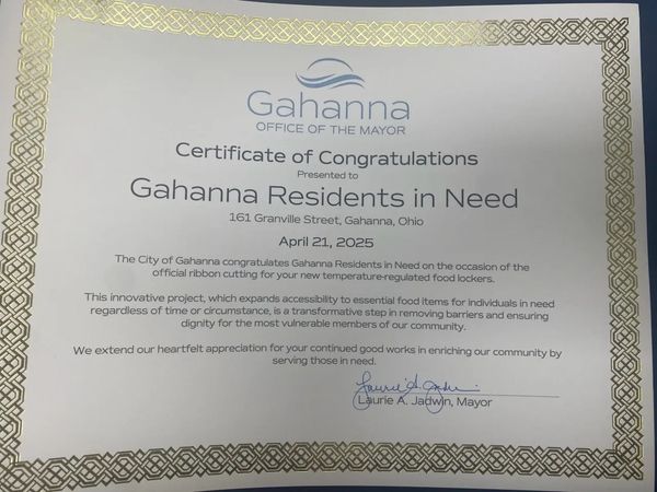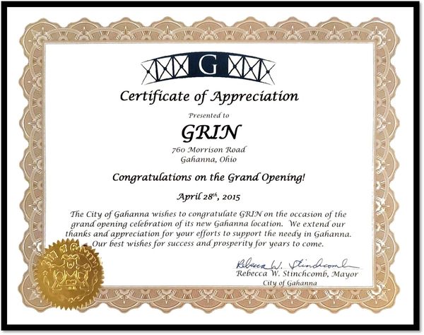 Gahanna Rotary, Rev. Donald Swift, Lions & Mifflin Presbyterian started giving food to those in need as GRIN.